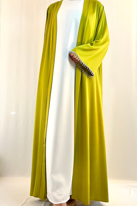KIMONO VERT POMME, SATINÉ AVEC STRASS